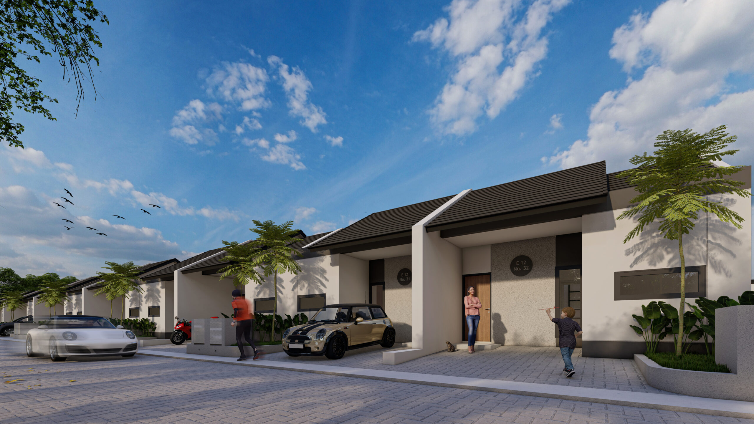 Fasad atau tampilan luar Saga menggabungkan kombinasi antara dinding putih dengan dinding kamprot warna abu-abu khusus (mercury grey)